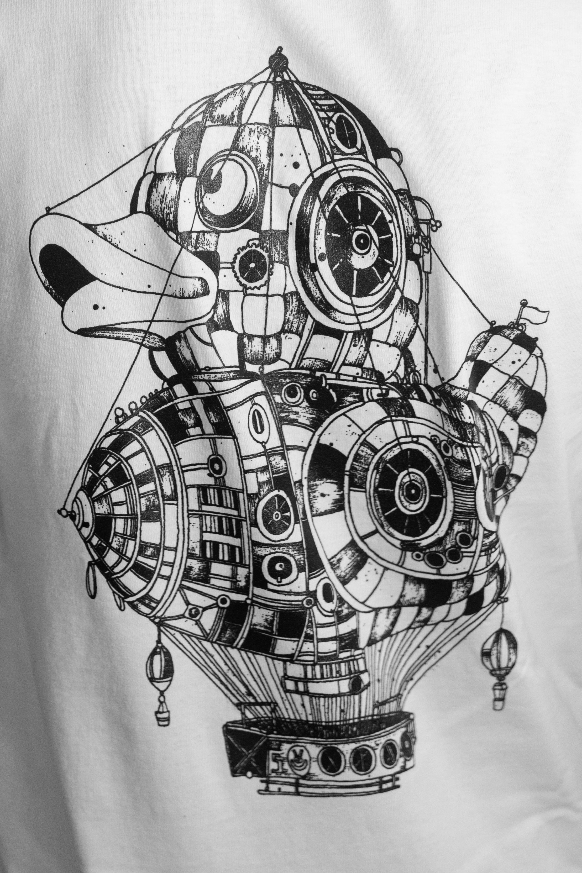 Enten-Riesenluftschiff!!! Zusammengeflickt aus Wahnsinn und Stahl. Es schwebt zugleich schwer und verspielt, wie ein Traum, der die Schwerkraft verweigert! Eine ganze Welt könnte auf seinem Rücken fliegen – wenn Du dem Absurden zutraust, Dich zu tragen.