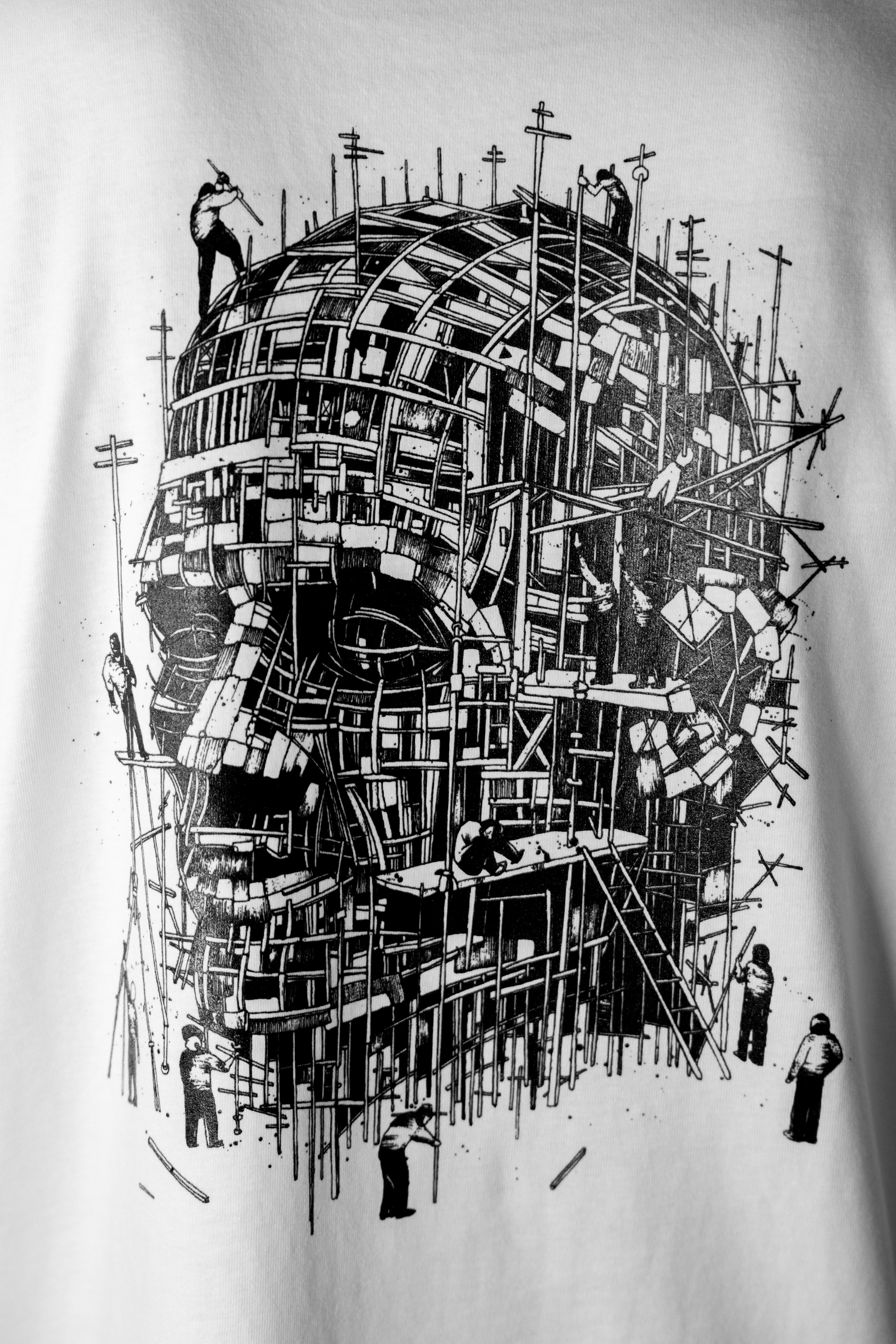 Dieser Kopf ist eine Baustelle, immer im Werden. Menschen bauen und bauen um, ohne je zu wissen, wann er fertig ist. Identität wird hier zusammengehämmert – fragil, massig und lebendig! -