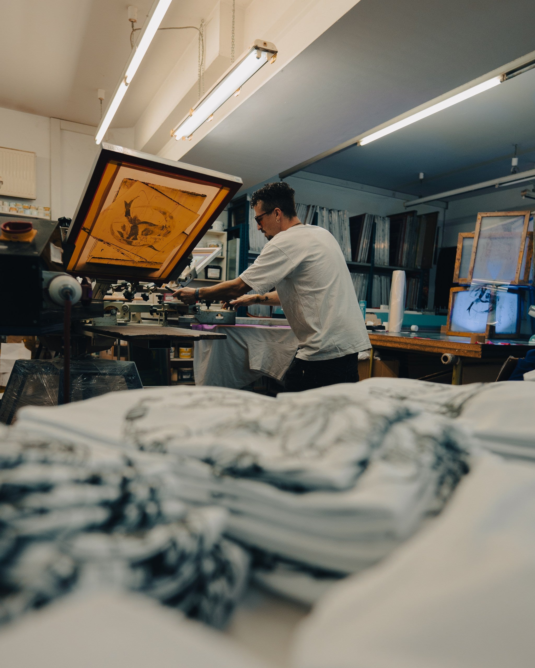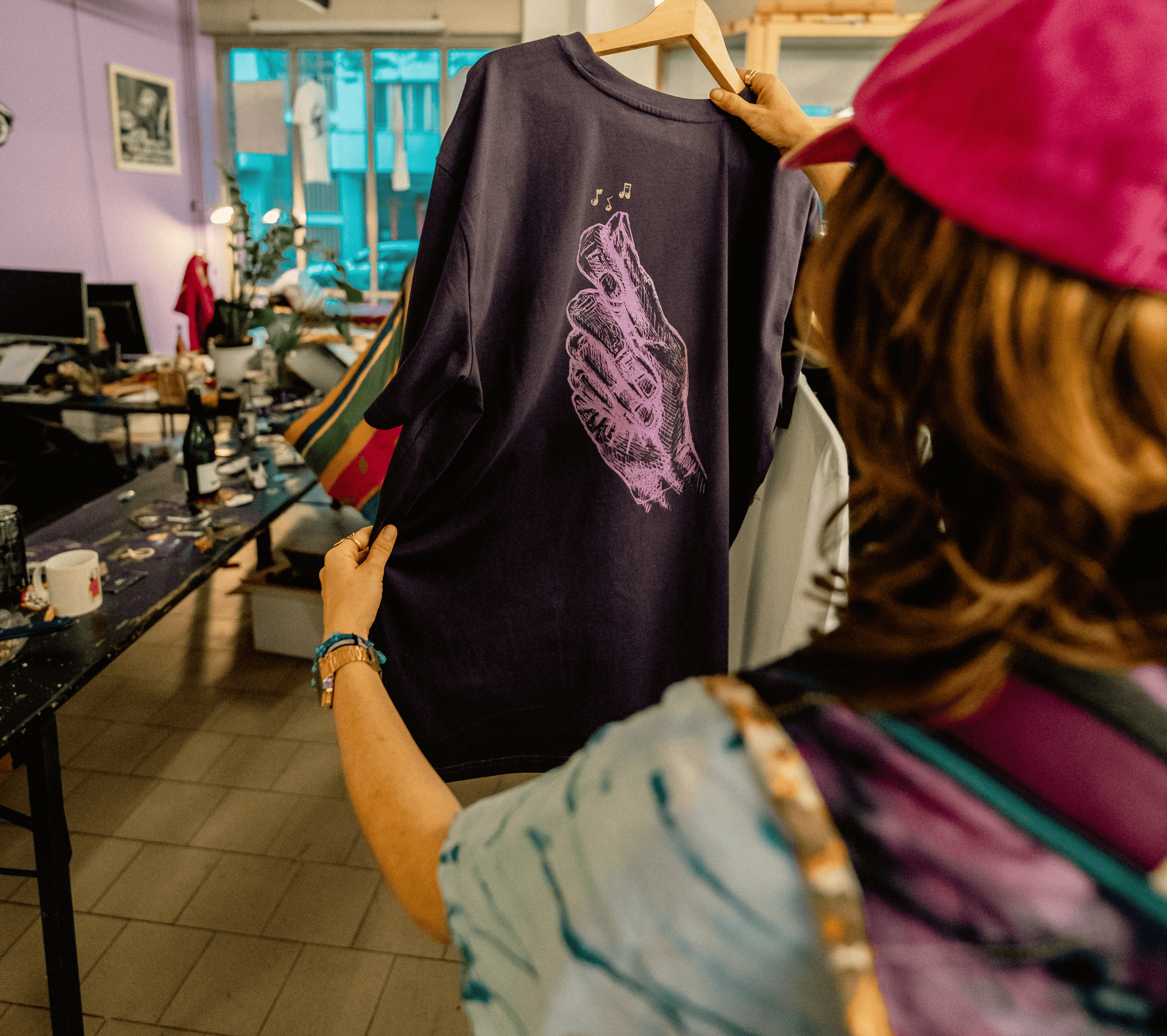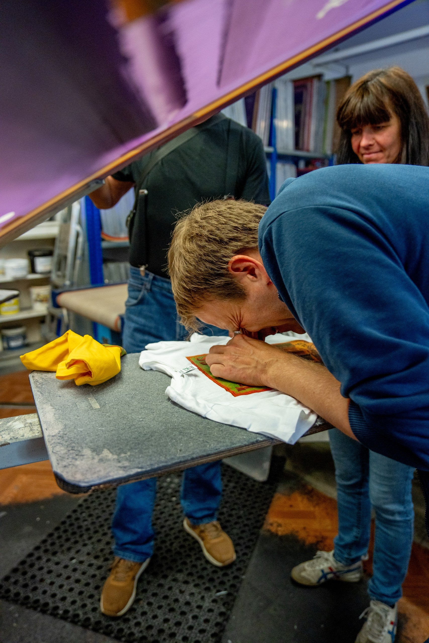 Hier bekommst Du Einblicke in unsere tägliche Arbeit: manuelle Siebdruckprozesse, detaillierte CMYK-Drucke, Farbmischungen, Siebpräparation, Werkstattleben und Festivalmomente. Unsere Galerie ist eine Hommage an das, was wir lieben: Handwerk, Textilien, Farbe und Zusammenarbeit.