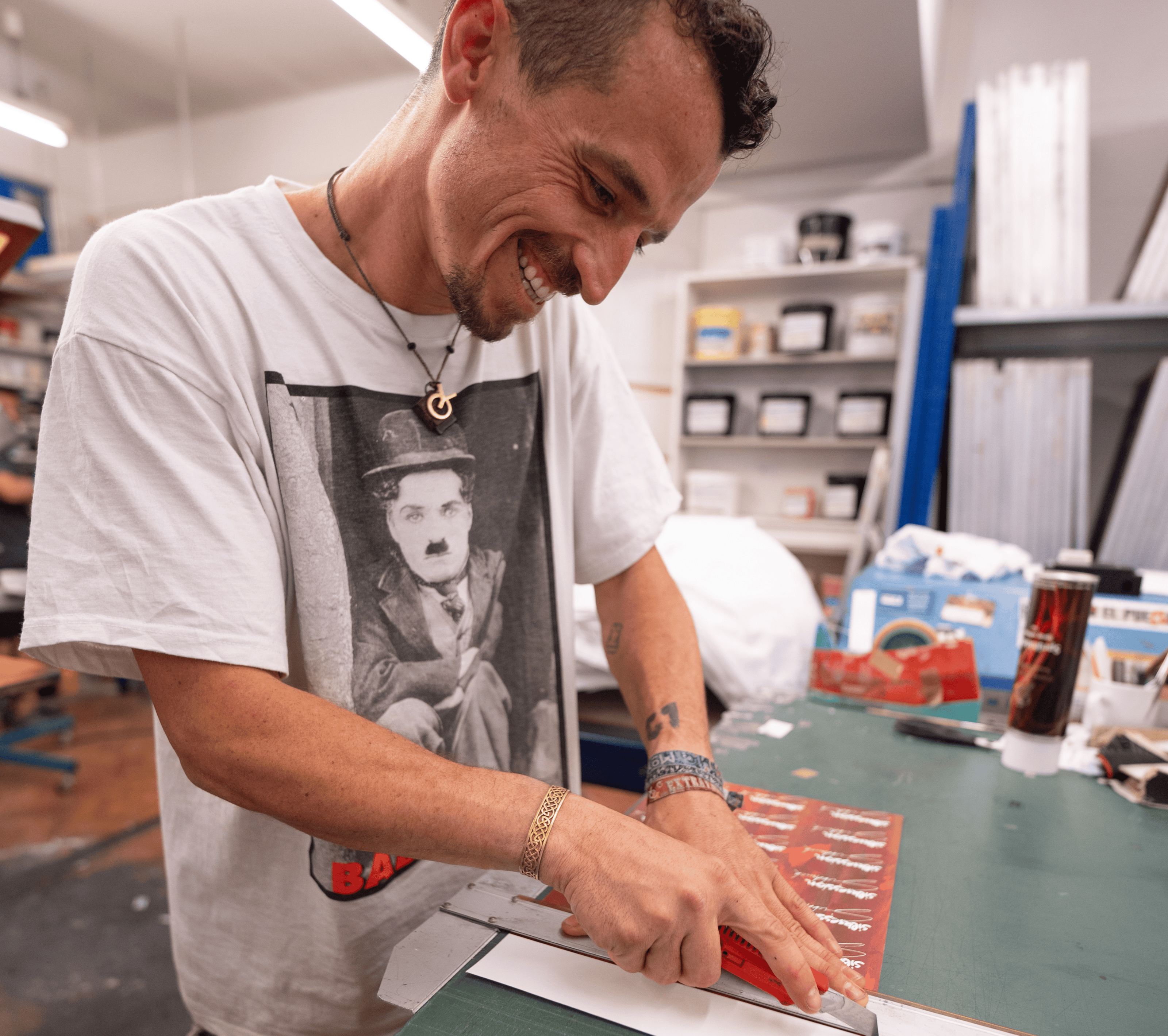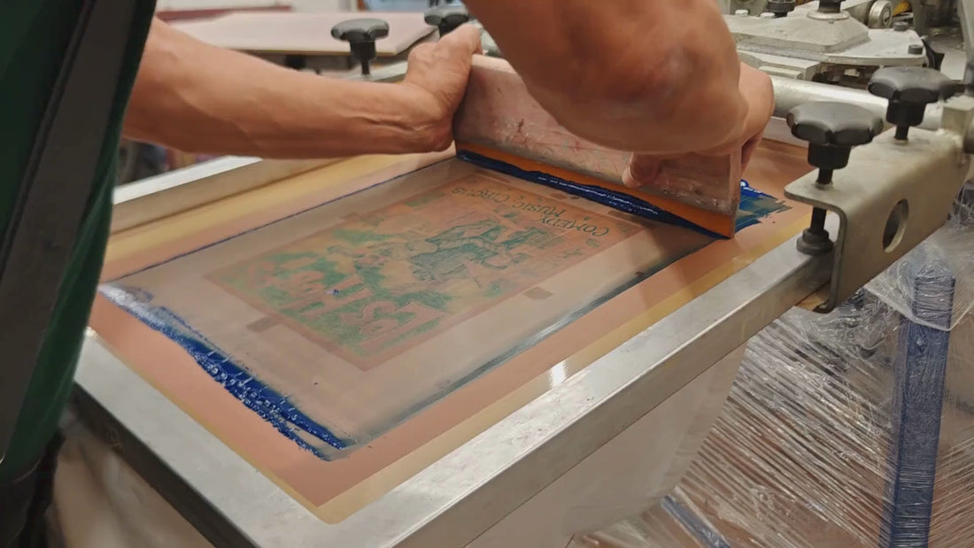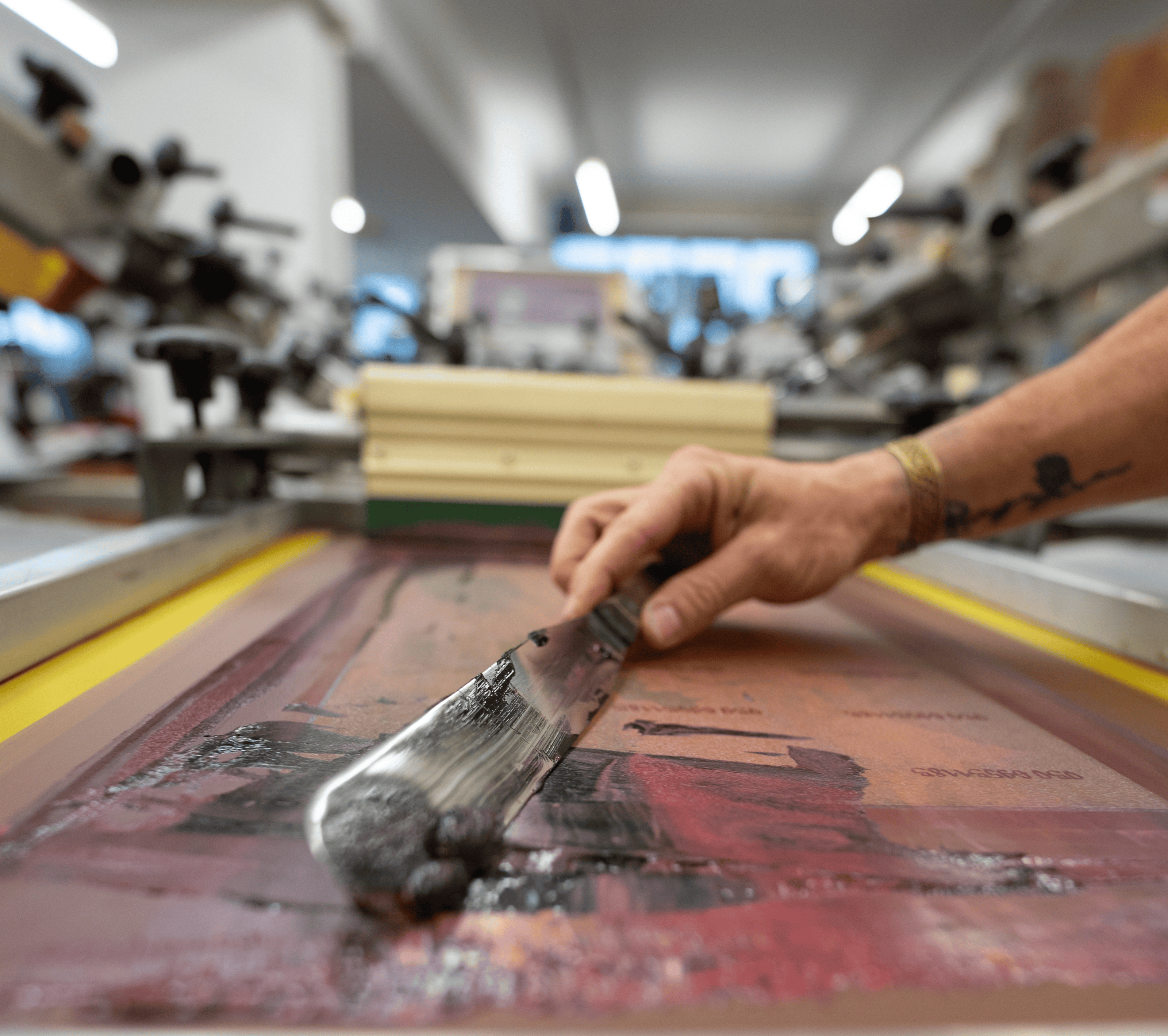 Hier bekommst Du Einblicke in unsere tägliche Arbeit: manuelle Siebdruckprozesse, detaillierte CMYK-Drucke, Farbmischungen, Siebpräparation, Werkstattleben und Festivalmomente. Unsere Galerie ist eine Hommage an das, was wir lieben: Handwerk, Textilien, Farbe und Zusammenarbeit.